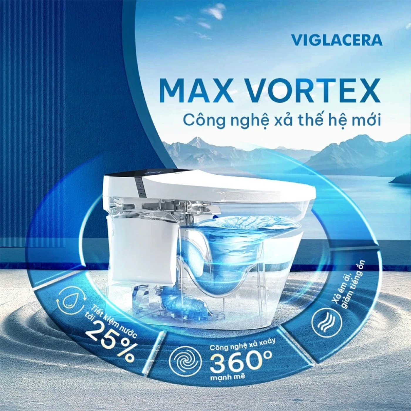 Công nghệ xả xoáy Max Vortex mạnh mẽ: Bồn cầu Viglacera V829 ứng dụng hệ thống xả Max Vortex với lực xả xoáy 360 độ kết hợp hút siphon cực mạnh giúp cuốn trôi mọi chất bẩn. Dù có lực xả mạnh mẽ, sản phẩm vẫn vận hành vô cùng êm ái và không gây ra tiếng ồn khó chịu.