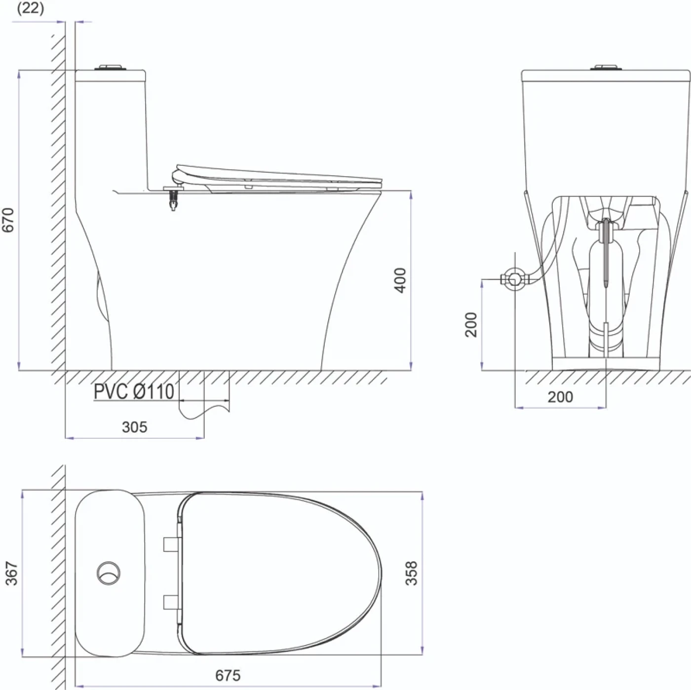 Bản vẽ kỹ thuật Bồn cầu 1 khối Viglacera V829