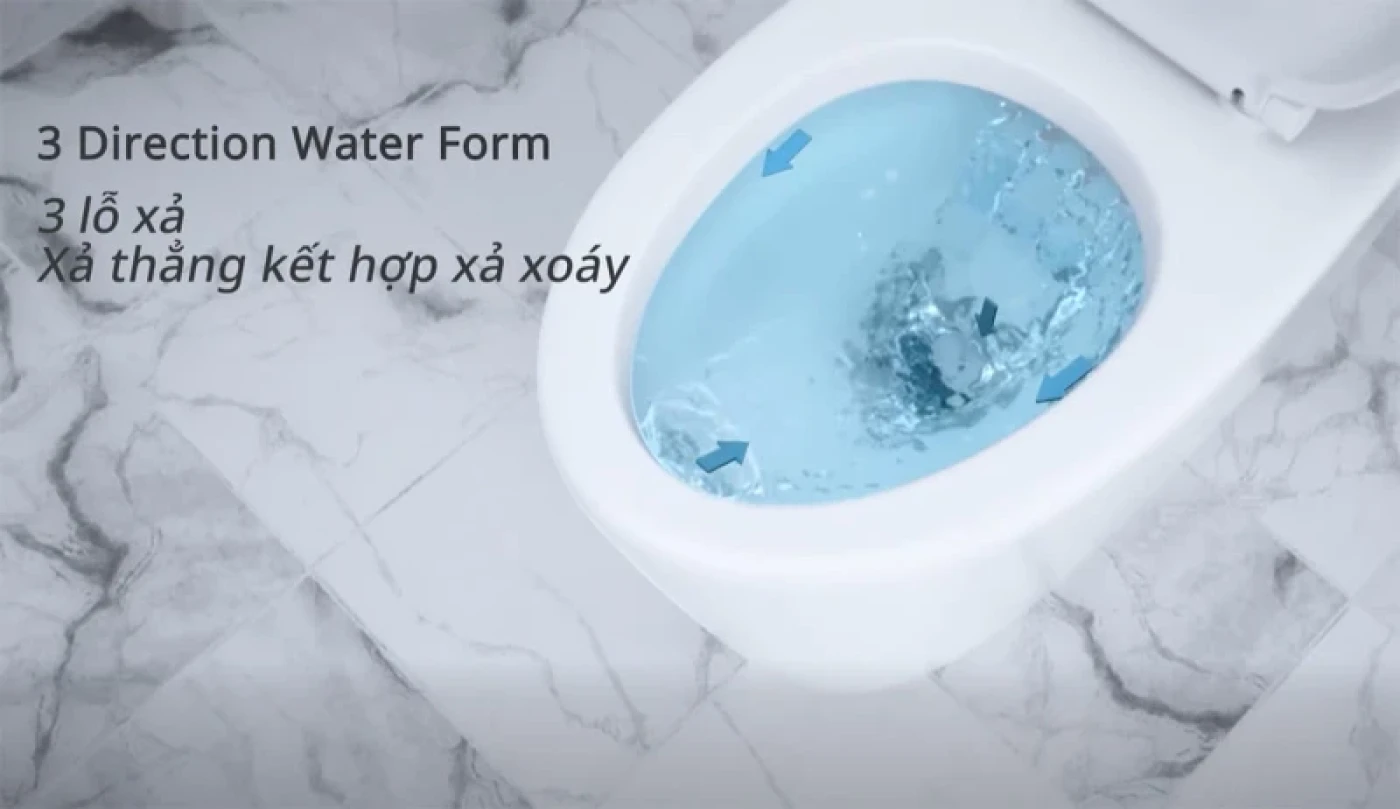 Hệ thống xả Triplex tiết kiệm nước: Công nghệ xả Triplex tạo lực xả thẳng mạnh giúp cuốn trôi chất bẩn nhanh chóng. Mỗi lần xả chỉ sử dụng khoảng 4.5L nước nhưng vẫn đảm bảo hiệu quả làm sạch ổn định. Tính năng này giúp bồn cầu xả không chạm Cotto C126227 tối ưu lượng nước tiêu thụ trong sinh hoạt hằng ngày.