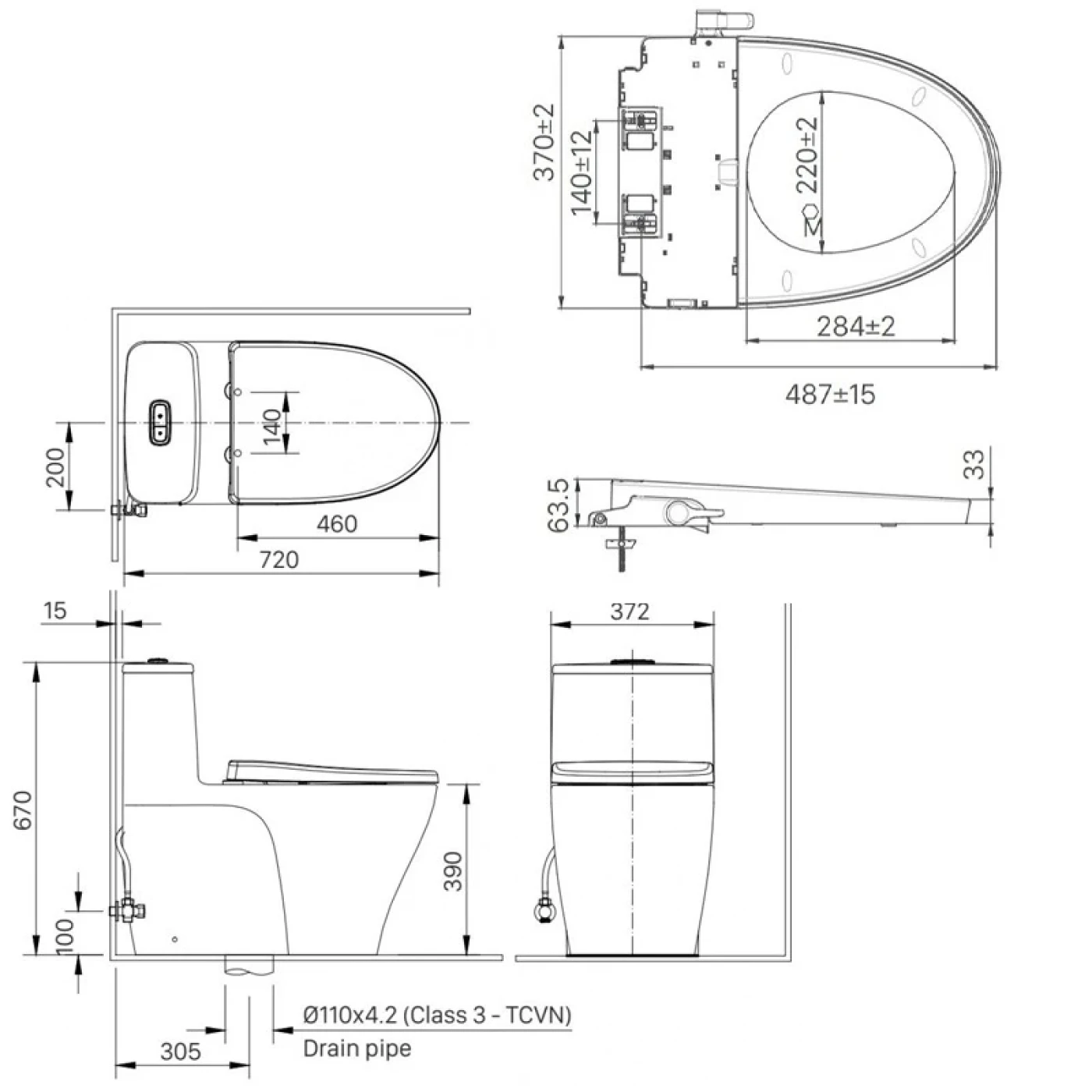 Bản vẽ kỹ thuật bồn cầu Inax AC-989VN+CW-S32VN