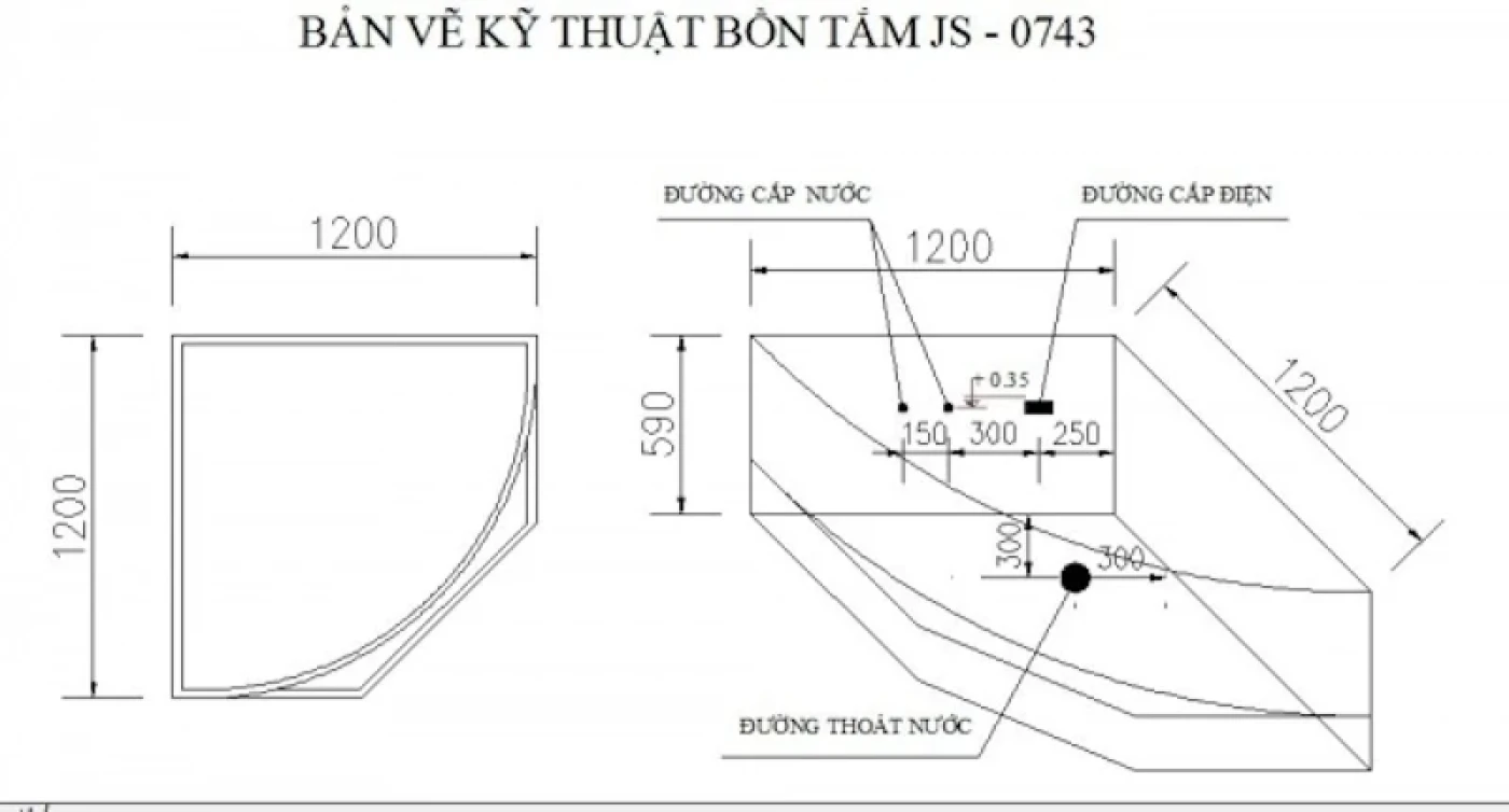 Bản vẽ kỹ thuật bồn tắm Massage Govern JS-0743