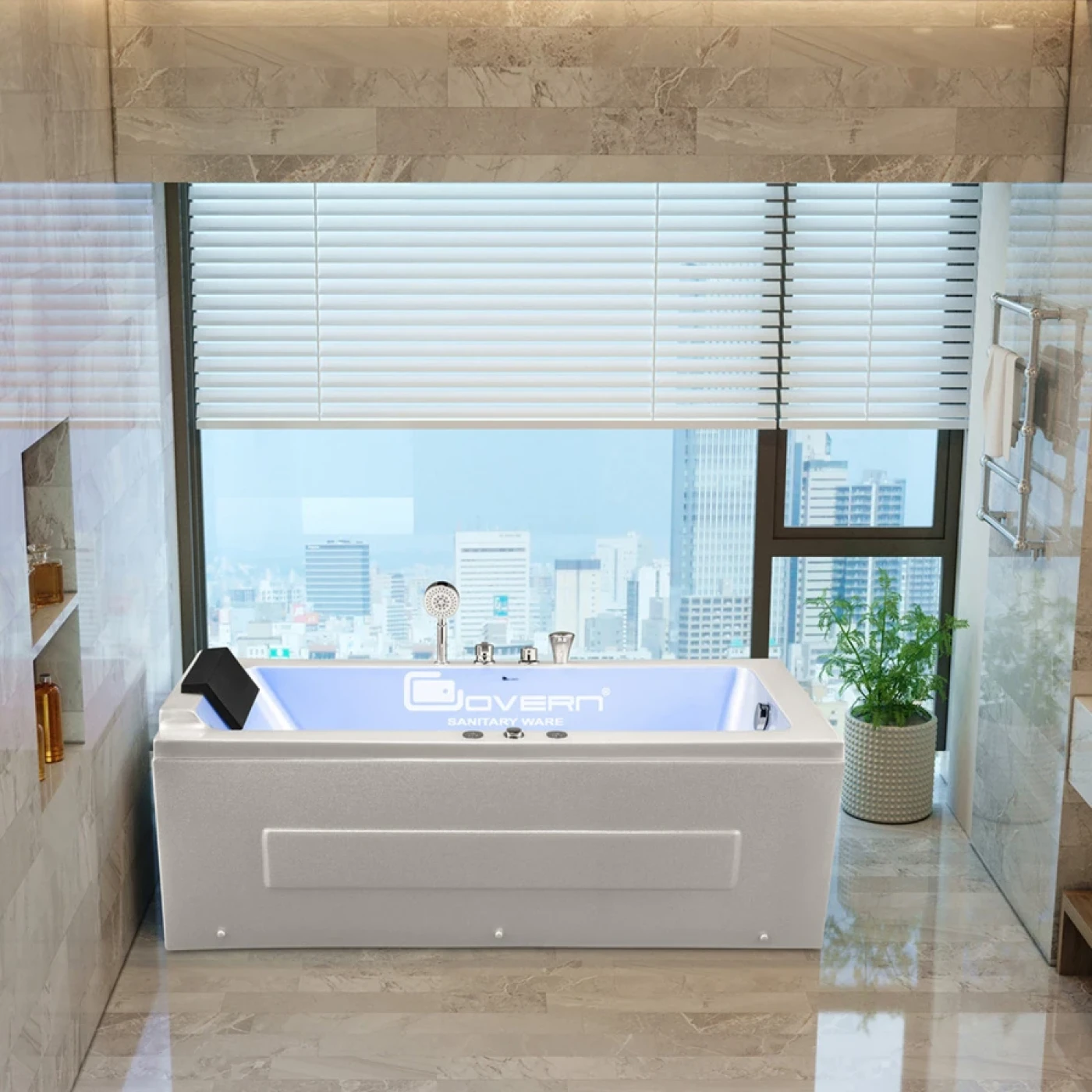 Trang thiết bị đồng bộ và sang trọng: Bồn tắm Massage Govern JS-6341 đi kèm đầy đủ bộ phụ kiện cao cấp như sen tay di động, vòi cấp nước và hệ thống đèn LED đa sắc tạo không gian thư giãn huyền ảo. Các bộ điều chỉnh chế độ trên bồn tắm được thiết kế hợp lý, giúp người dùng dễ dàng thao tác và sử dụng hài hòa mọi tính năng.
