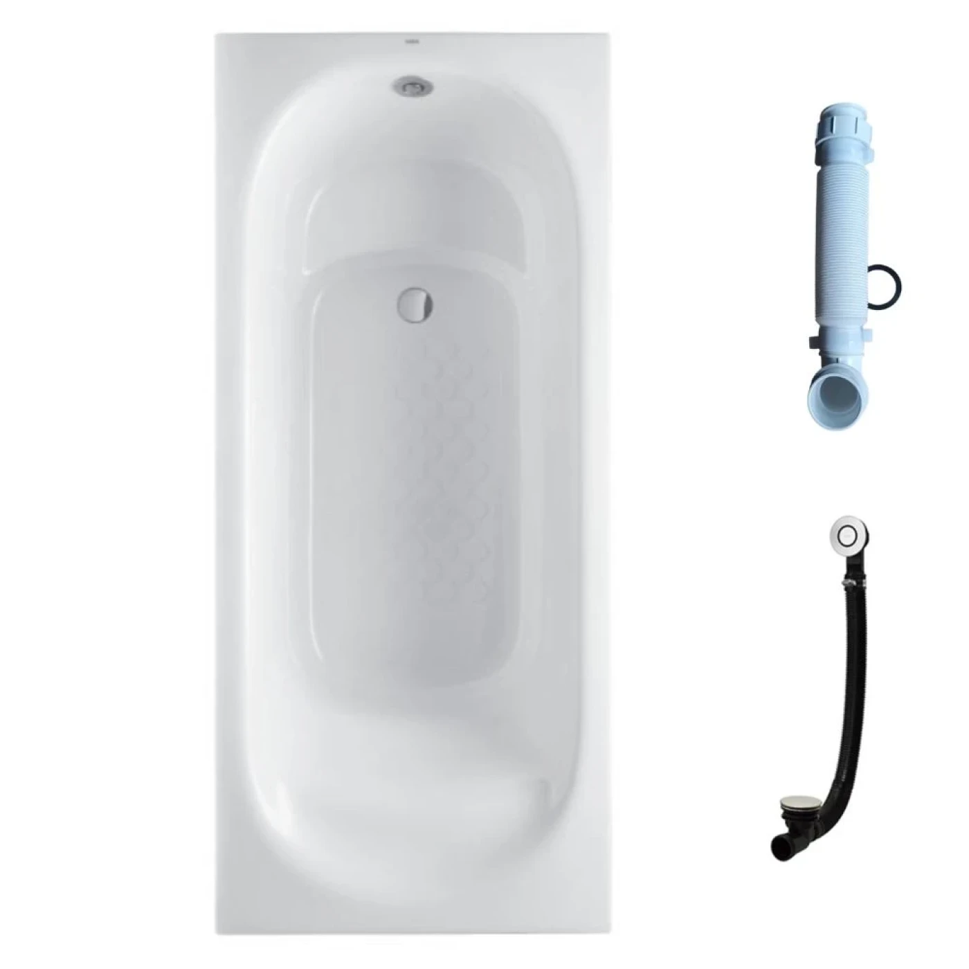Phụ kiện hoàn thiện tinh xảo: Hệ thống lỗ thoát nước và chống tràn của bồn tắm được mạ Chrome sáng bóng, không chỉ bền bỉ mà còn tăng thêm vẻ đẹp cao cấp cho sản phẩm.