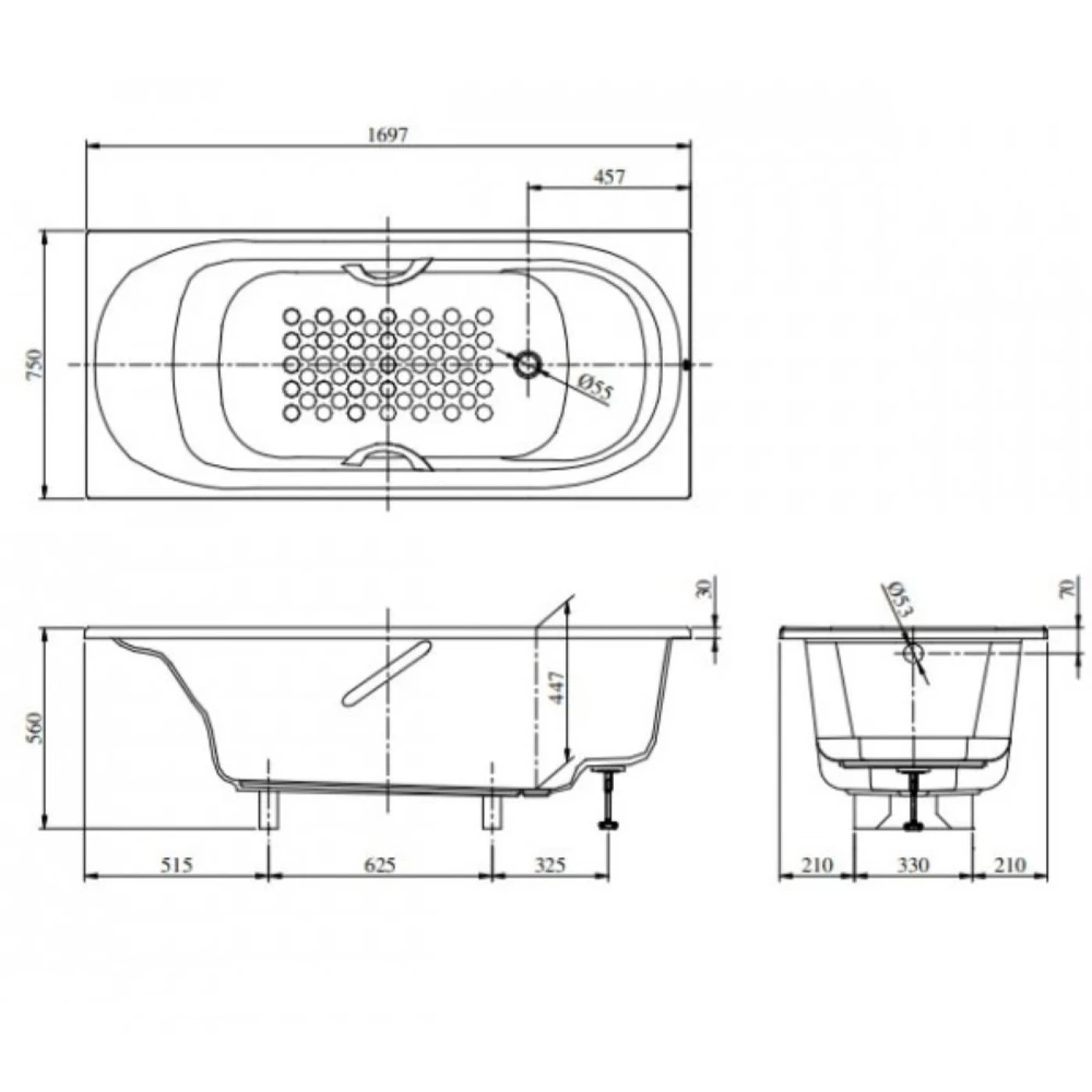 Bản vẽ kỹ thuật bồn tắm Ngọc Trai TOTO PPY1750PE/DB505R-3B/TVBF412
