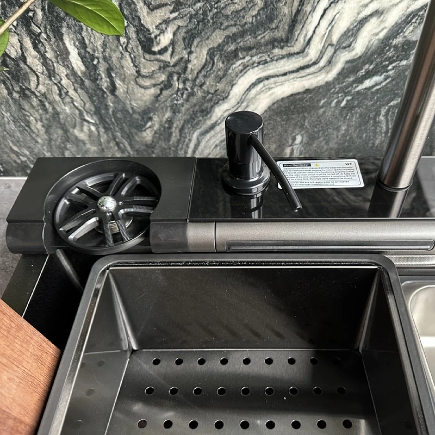 Tích hợp các phụ kiện thông minh: BL.D.75.45.KTS còn được ví như một trạm làm việc đa năng khi được trang bị đầy đủ các phụ kiện cao cấp đi kèm như: Vòi phím đàn KTS hiển thị nhiệt độ, thớt gỗ, chậu phụ, vòi lạnh ( nước lọc), hộp đựng xà phòng, giá để ráo nước…giúp tối ưu hóa mọi thao tác trong bếp. Từ đó biến việc bếp núc trở nên gọn gàng, nhanh chóng và dễ dàng hơn bao giờ hết.
