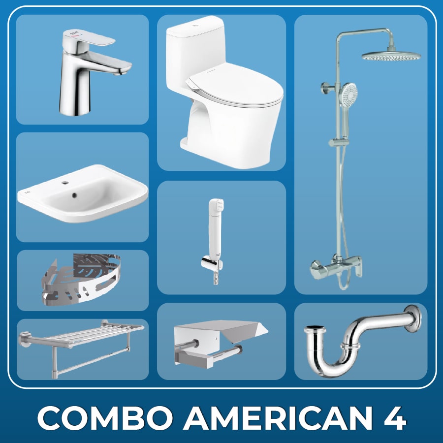 Combo thiết bị vệ sinh American Standard 04 bao gồm những sản phẩm thiết bị vệ sinh của thương hiệu hàng đầu bán chạy nhất. Sở hữu bộ thiết bị vệ sinh này giúp không gian phòng tắm của gia đình bạn trở nên đẹp đẽ hơn.