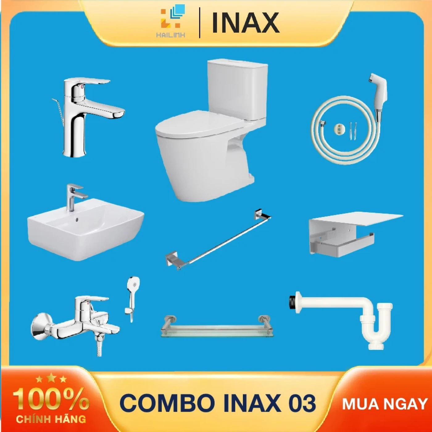 Mời quý khách hàng tham khảo bộ Combo thiết bị vệ sinh Inax + Belli số 3 bao gồm 9 sản phẩm đồng bộ. Bộ combo được đại lý Inax Hải Linh thiết kế giúp khách hàng tiết kiệm thời gian khi mua sắm. Đặc biệt, giá combo Inax + Belli số 3 có giá siêu rẻ mang lại lợi ích kinh tế cho các gia đình.