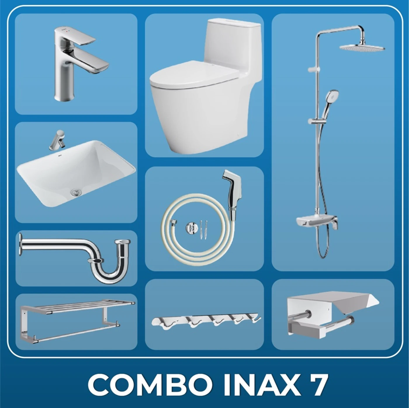 Combo thiết bị vệ sinh Inax + Belli số 7 bao gồm trọn bộ thiết bị vệ sinh có thiết kế đẹp, độ bền cao, có thể lắp đặt tại nhiều không gian phòng tắm khác nhau. Sản phẩm đang được bán chính hãng tại hệ thống Showroom Hải Linh với giá thành ưu đãi cao.