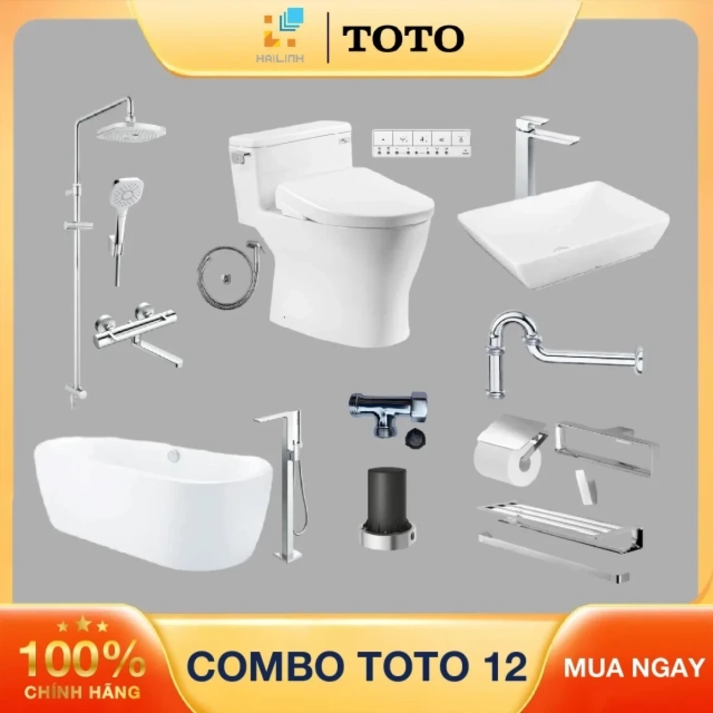 Combo TOTO 12 bao gồm MS188VKW23#XW, T53P100VR, TVCF201, HTHX58, LT1735#XW, TLG02307V, TVLF404, TBW02002BA, TBV03429V, TBW02005V, YS902N5V, PAY1717CPTNE#W, TBG02306BA và TBN01105B. Bộ sản phẩm cao cấp này hứa hẹn sẽ nâng tầm không gian phòng tắm sang trọng, hiện đại với những tiện nghi vượt trội.