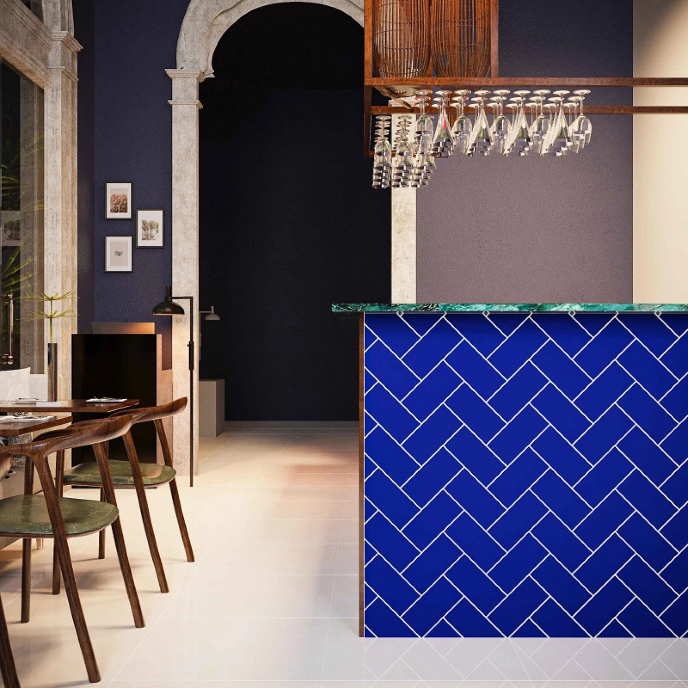 - Mẫu gạch tông xanh biển đậm, sẽ là điểm nhấn nổi bật cho bất cứ không gian nào ứng dụng.