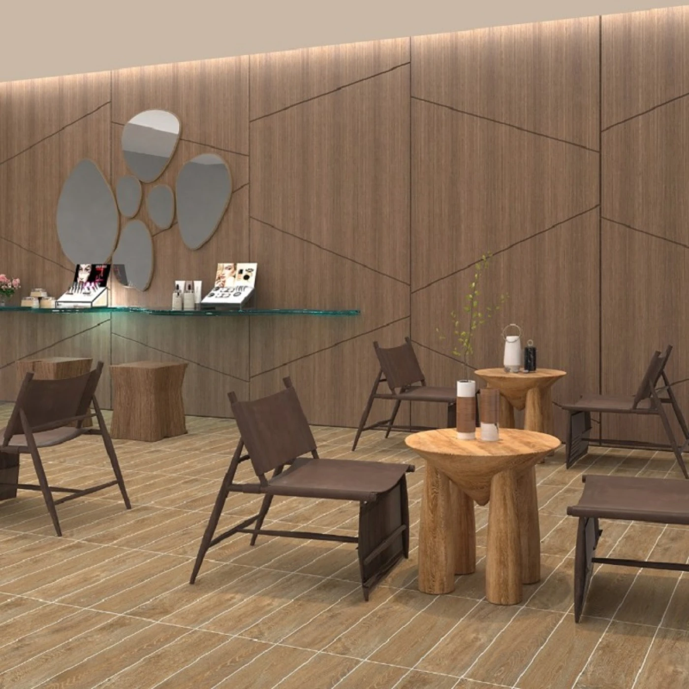 • Nhờ ứng dụng công nghệ in 3D cho cảm nhận độ gồ trên từng sớ vân, mỗi viên gạch mô phỏng hoàn hảo vẻ đẹp chân thực của gỗ tự nhiên. Sử dụng gạch mà như gỗ thật, tạo nên một không gian tuyệt tác