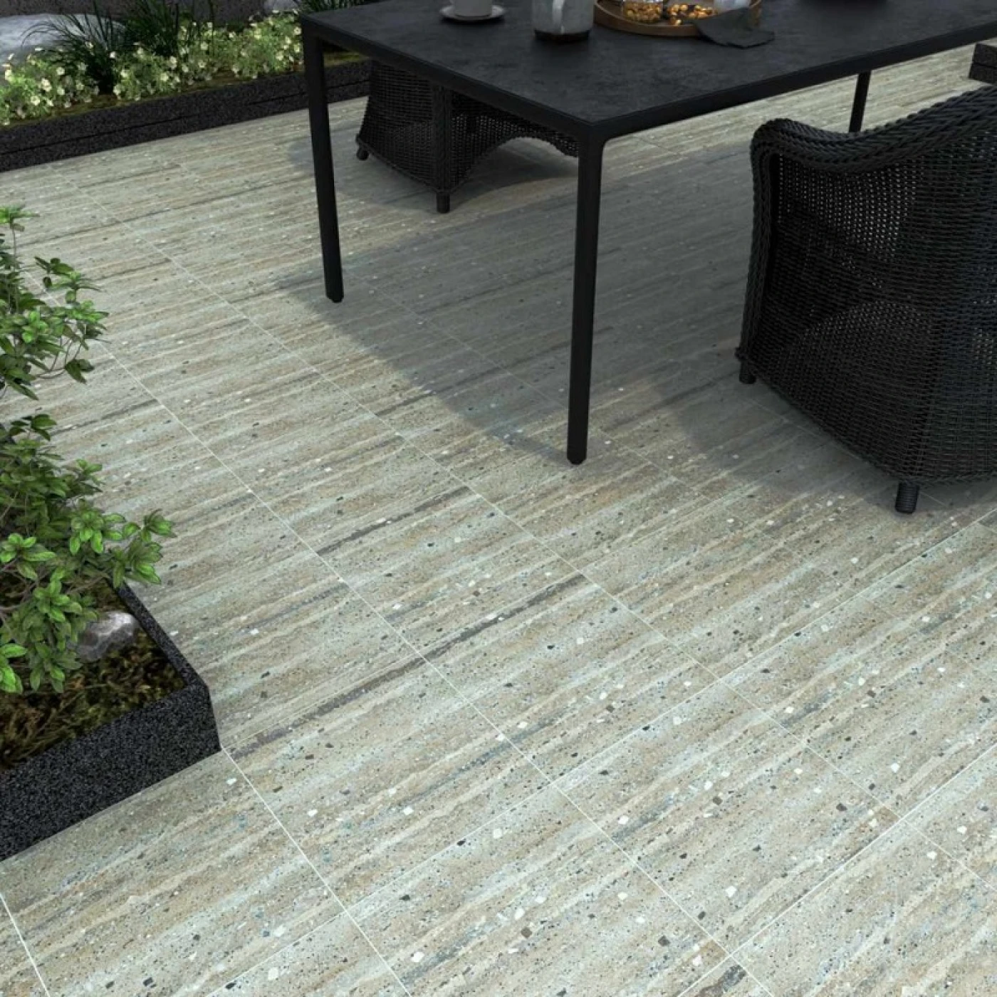 Ứng dụng: Phù hợp lát ngoại thất sân vườn, ban công, hành lang, hồ bơi, phòng tắm, sân thượng theo phong cách hiện đại, cổ điển.