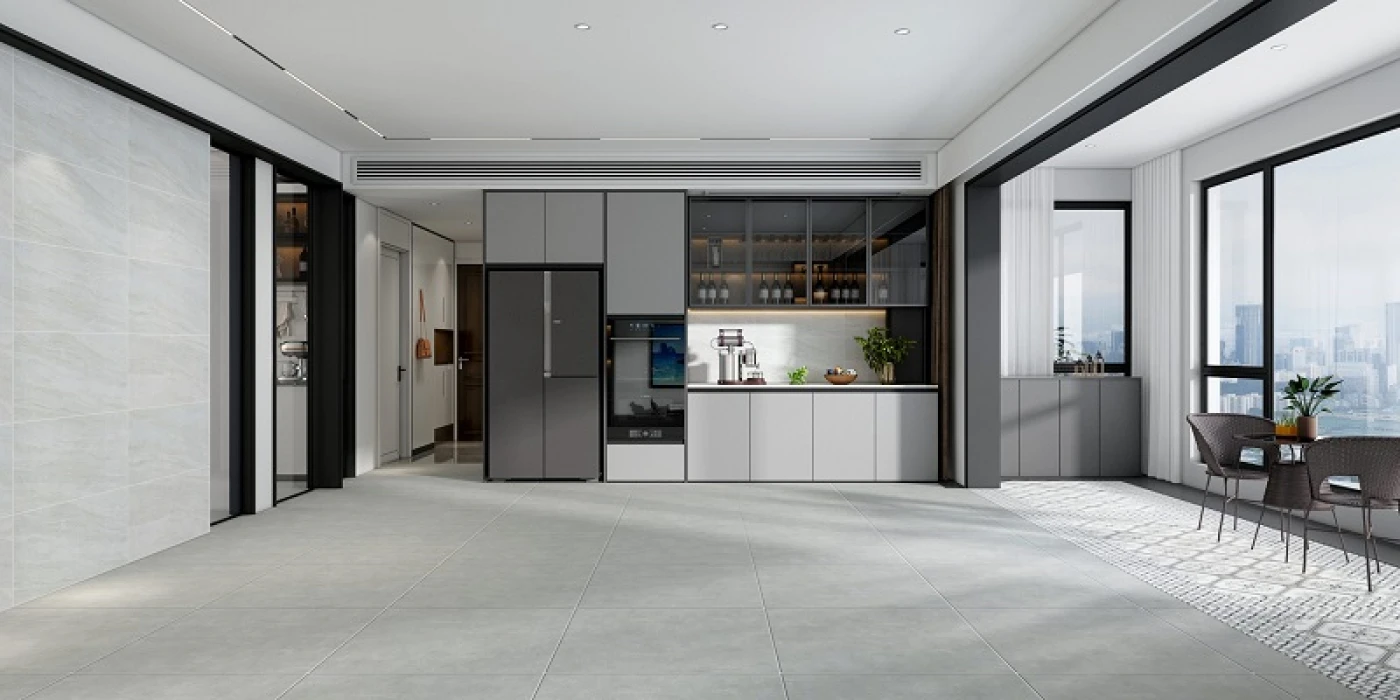 - Trên nền màu xám nhẹ, gạch kích thước 40x80 giúp cho không gian thêm thông thoáng, hiện đại và sang trọng hơn
