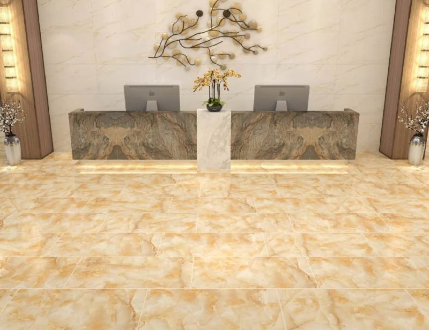 Gạch lát nền Đồng Tâm 60120 LANGBIANG 002-FP-H+ gây ấn tượng họa tiết vân đá sắc nét và phóng khoáng mang sắc vàng cam đất đỏ bazan trên nền gạch màu be vàng cực hài hòa, mô phỏng hoàn hảo nét đẹp thiên nhiên mạnh mẽ của núi rừng Tây Nguyên. Kết hợp cùng bề mặt men bóng là sự kết hợp vô cùng tuyệt vời để gia tăng thêm vẻ đẹp sang trọng, cao cấp của sản phẩm.