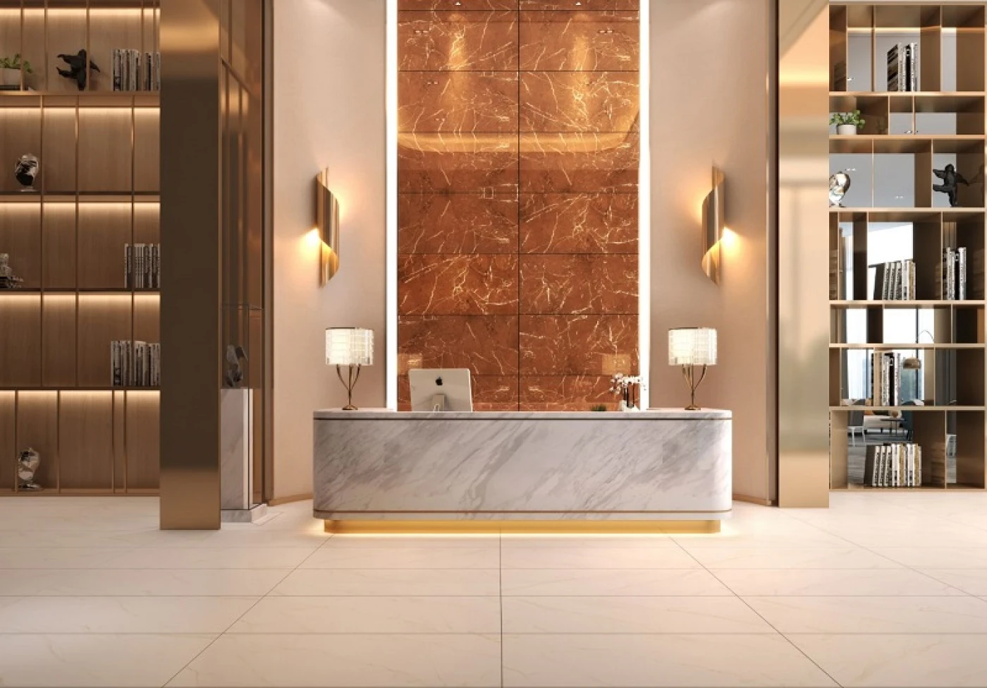 Ứng dụng lát hành lang phòng khách biệt thự gạch 60120STONE003-FP-H+