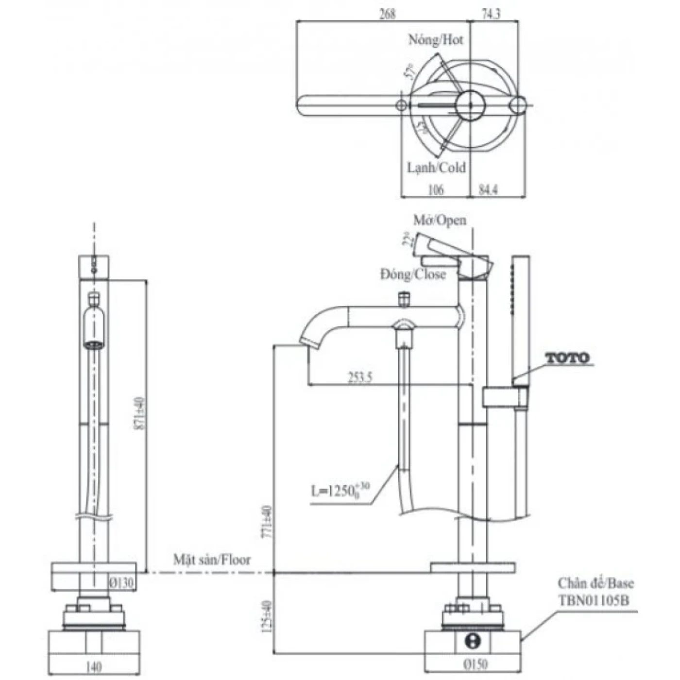Bản vẽ kỹ thuật vòi sen bồn tắm TOTO TBG11306AA/TBN01105B