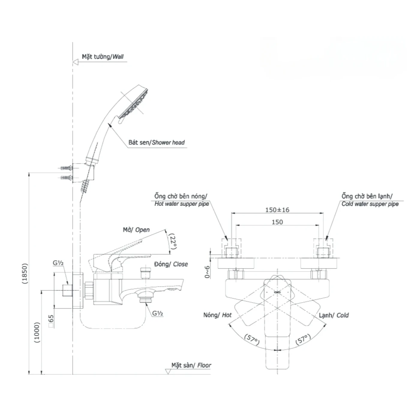 Bản vẽ kỹ thuật sen tắm nhiệt độ TOTO TBG07302VA /TBW02006V