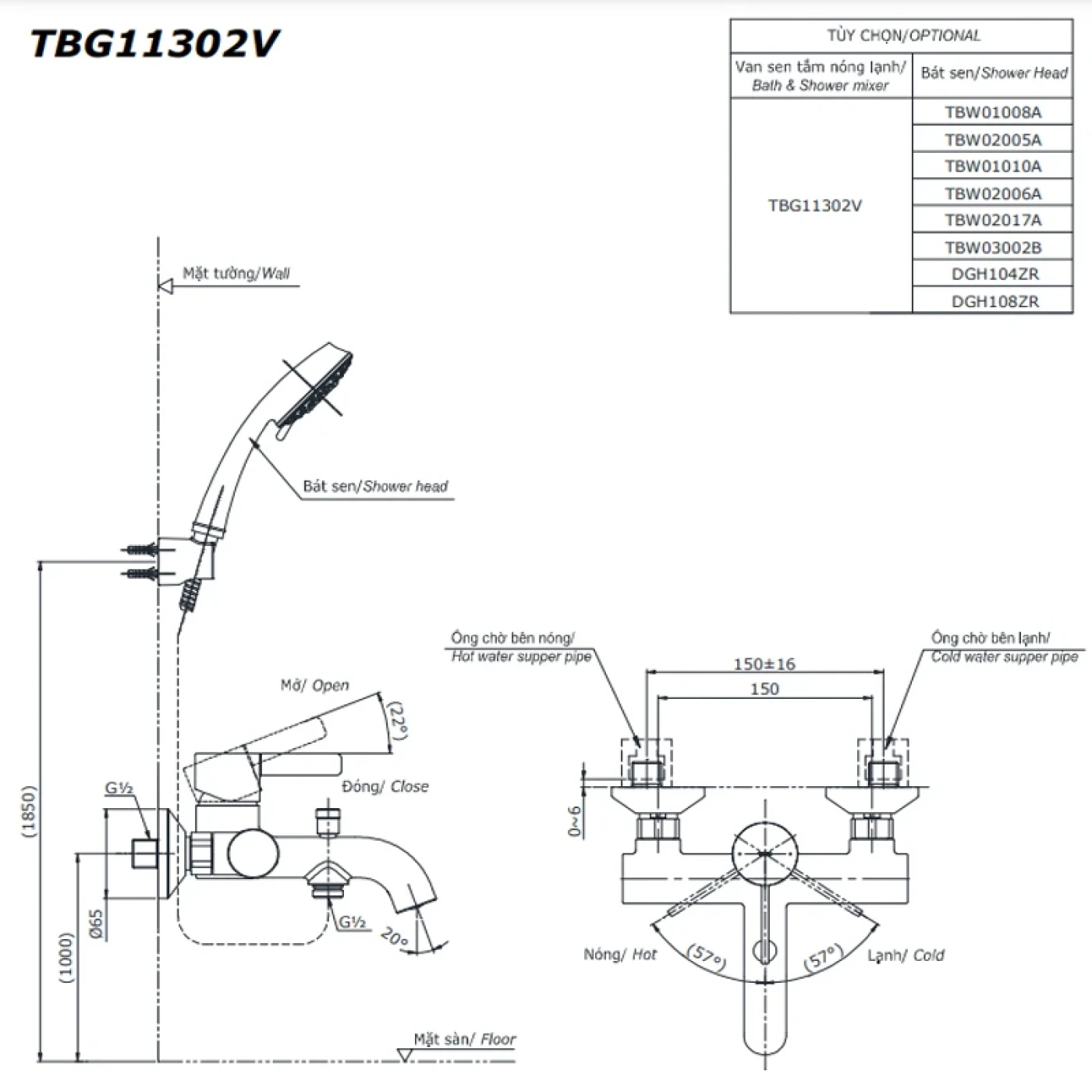 Thiết kế sang trọng, hiện đại: Sen tắm nóng lạnh TOTO TBG11302VA/TBW01010V sở hữu kiểu dáng thanh lịch thuộc bộ sưu tập GF, giúp không gian phòng tắm trở nên tinh tế và đồng bộ hơn.