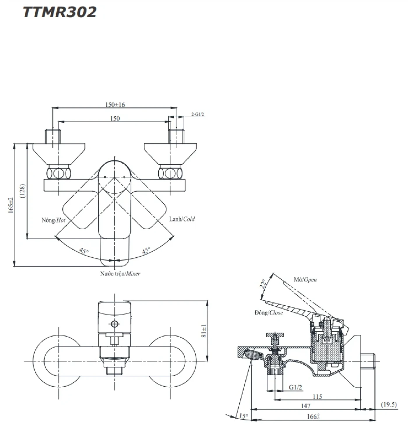 Bản vẽ kỹ thuật sen tắm nóng lạnh TOTO TTMR302V/DGH108ZR