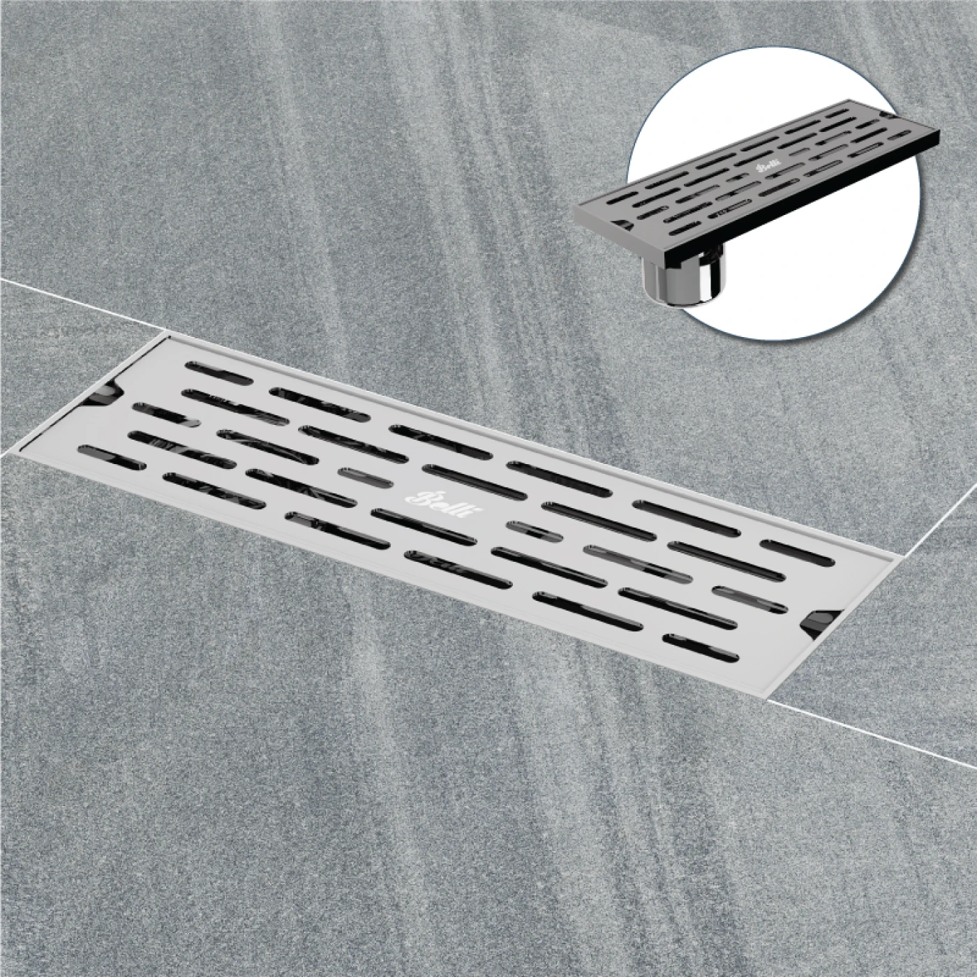Ga thoát sàn Belli thiết kế hình chữ nhật hiện đại giúp cho việc thoát nước nhanh, dễ dàng hơn. Phần nắp với các khe dài nhỏ hạn chế dị vật trôi vào đường ống dẫn và dễ dàng tháo rời để vệ sinh.