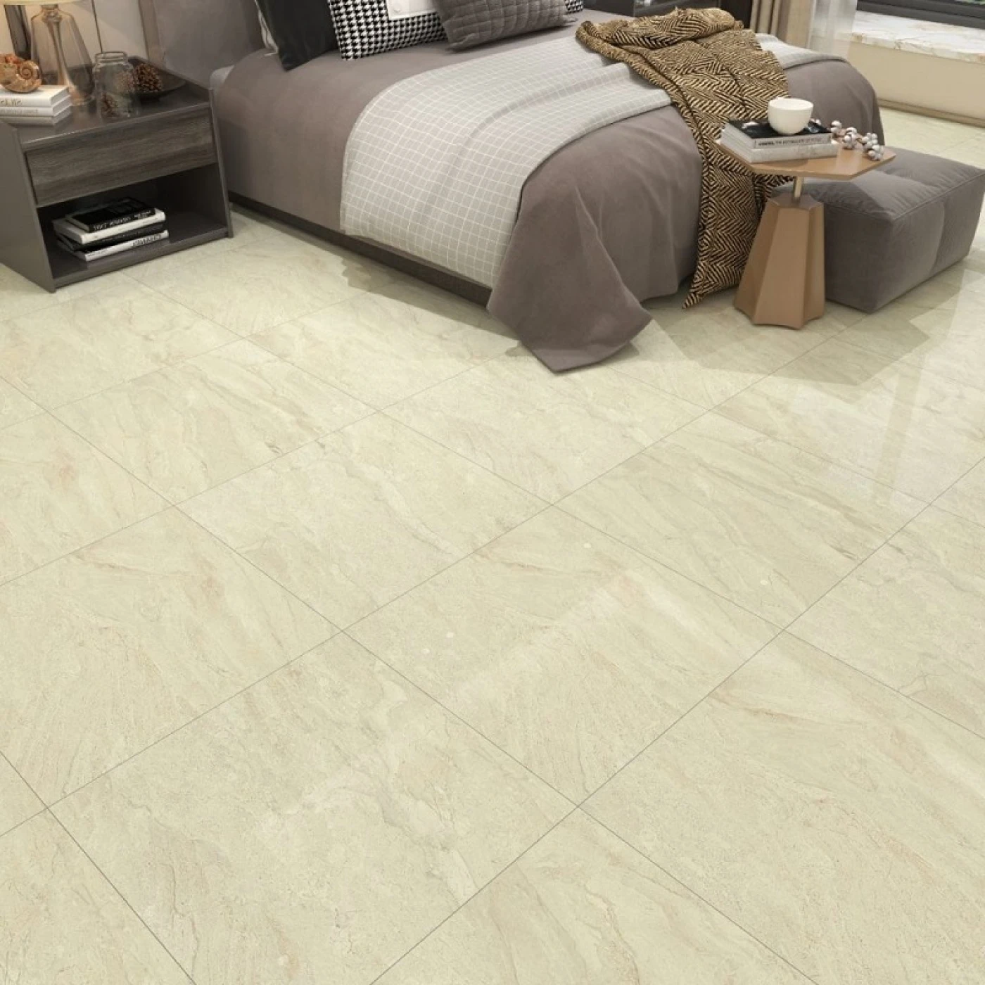 GẠCH PORCELAIN 6060TRANGAN007-FP vân đá màu kem ứng dụng lát nền phòng ngủ.