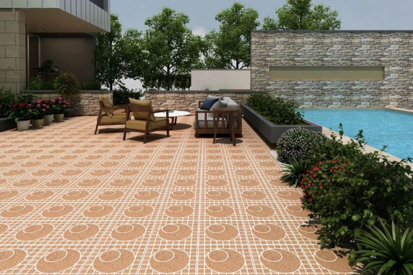 Mẫu gạch Porcelain 4040LYSON011, màu nâu cam, men mờ ứng dụng sân cạnh hồ bơi