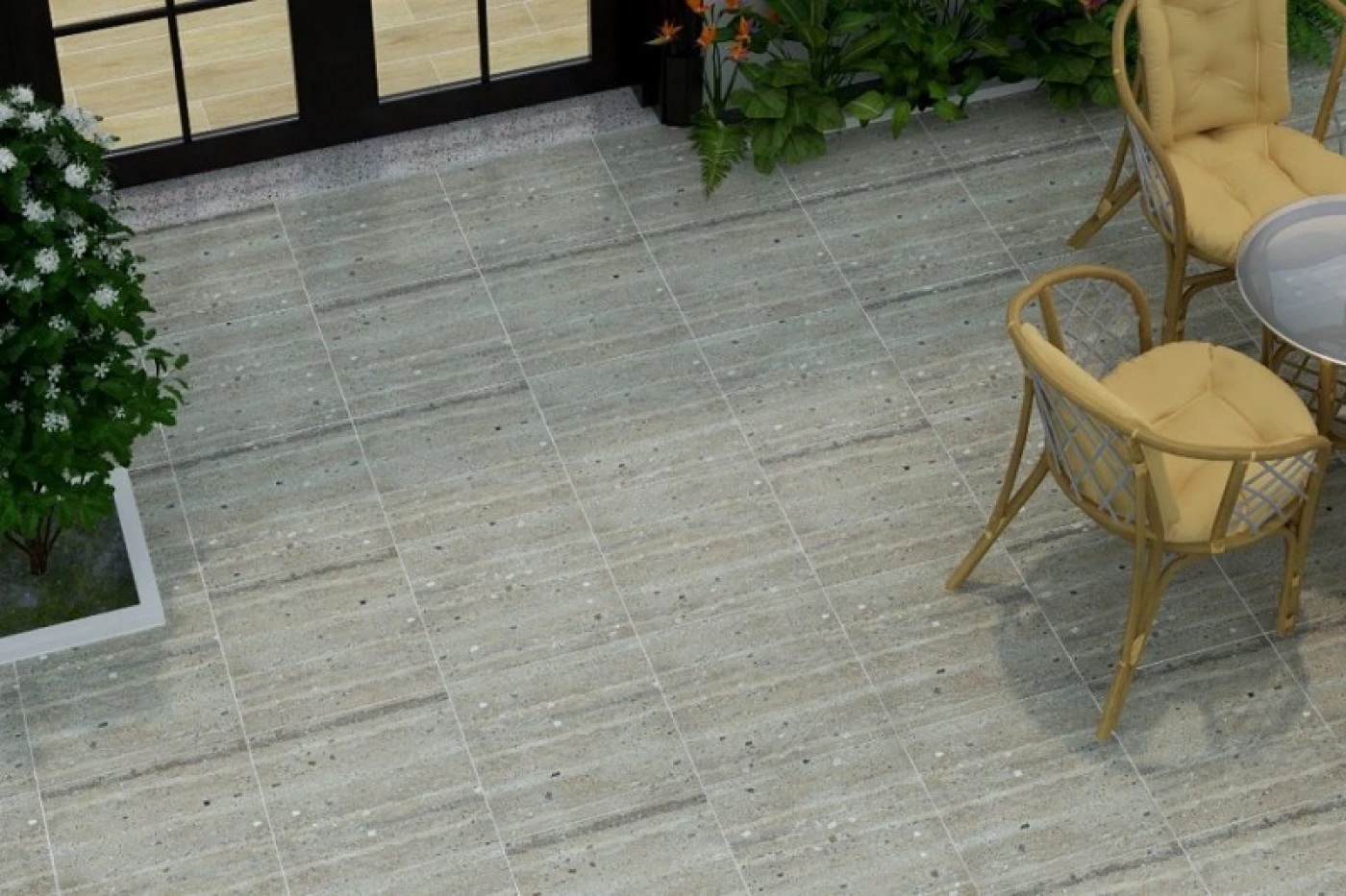 Mẫu gạch vân đá 4040LYSON004, màu xám đậm, men mờ ứng dụng lát hành lang sân vườn biệt thự phong cách tối giản.