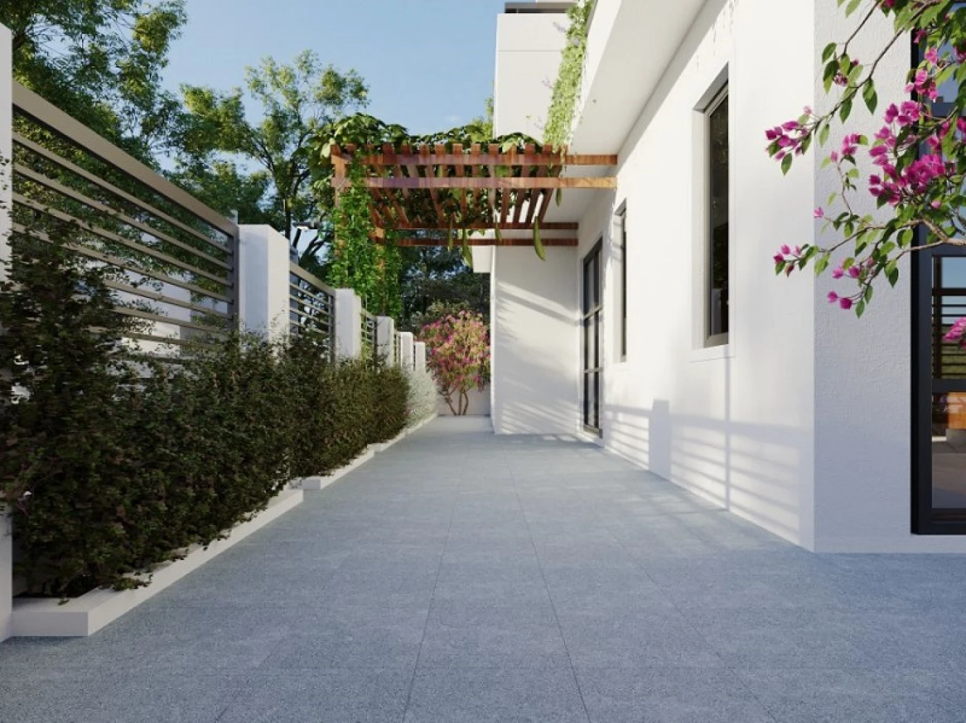 Khu vực sân vườn chịu tác động trực tiếp từ thời tiết, mưa nắng gạch Porcelain Lý Sơn cực kỳ phù hợp, bền đẹp thách thức mọi kiểu khí hậu.