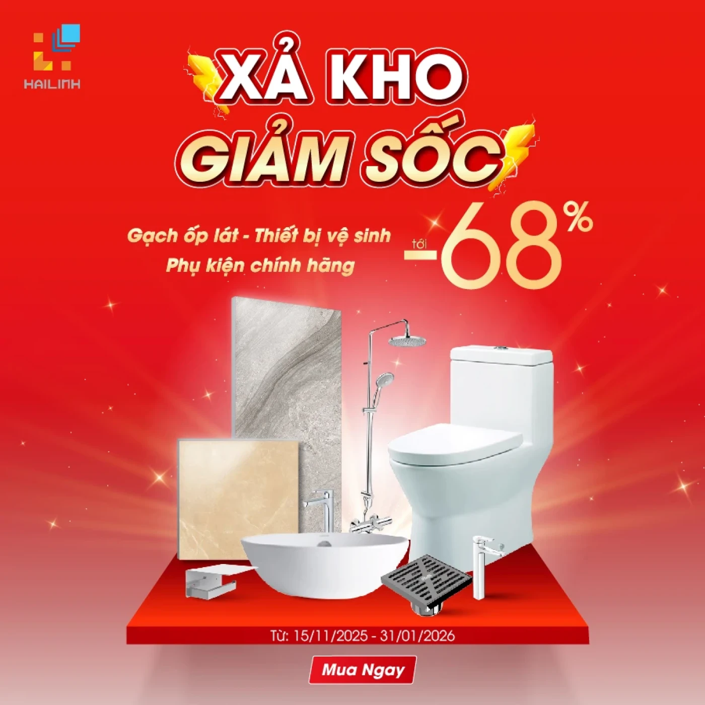 Sự kiện XẢ KHO LỚN NHẤT NĂM đã chính thức khởi động tại Hải Linh! Cơ hội DUY NHẤT trong năm để bạn sở các sản phẩm gạch ốp lát, thiết bị vệ sinh và phụ kiện chính hãng với mức giá SẬP SÀN, giảm sốc tới 68%.