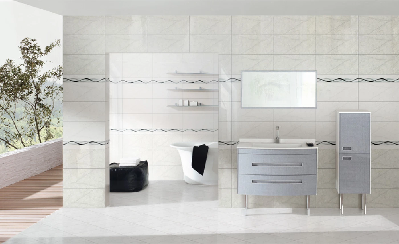 Mẫu gạch ốp tường vân đá marble 3060DELUXE009 với những đường vân mềm mại chạy trên nền gạch trắng ngà mang đến cảm nhận sinh động, giúp nạp lại năng lượng chuẩn bị cho ngày mới.