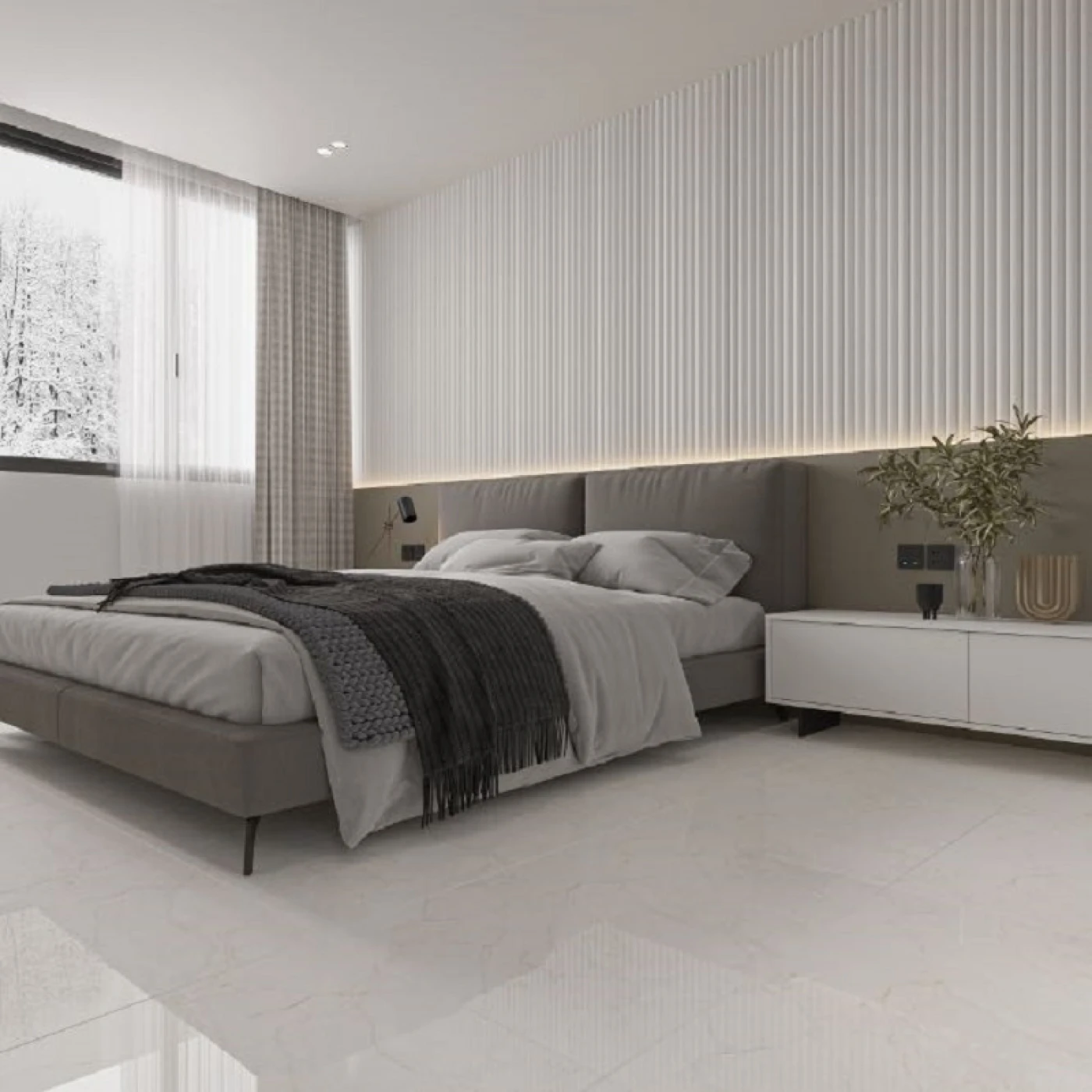 Không gian phòng ngủ là nơi để nghỉ ngơi, thư giãn và rất cần sự yên tĩnh, mang đậm dấu ấn của chủ nhận. Với phòng ngủ, quý khách có thể chọn gạch lát nền 60X60 Đồng Tâm trong BST Vàm cỏ Đông mang nét đẹp yên bình huyền sử của con sông Vàm Cỏ ở tỉnh Long An, xương gạch Porcelain, vân đá, gam màu trung tính tối giản như kem, xám, vàng nhạt, trắng, bề mặt men mờ tăng chiều sâu cho không gian, …
