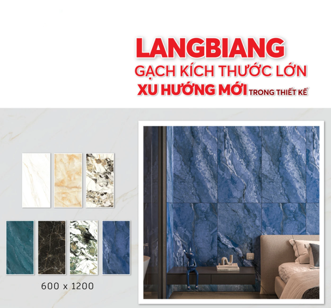 Sử dụng gạch khổ lớn là xu hướng của Kiến trúc hiện đại, được các kiến trúc sư sáng tạo ứng dụng vào rất nhiều công trình cao cấp. Bộ sưu tập gạch Granite kháng khuẩn Langbiang có kích thước 60x120. Điểm cộng của các loại gạch khổ lớn, men bóng là sang trọng hơn, khi ốp lát sẽ có tính thẩm mỹ cao hơn vì ít đường ron gạch, tạo được sự liền mạch và thống nhất.