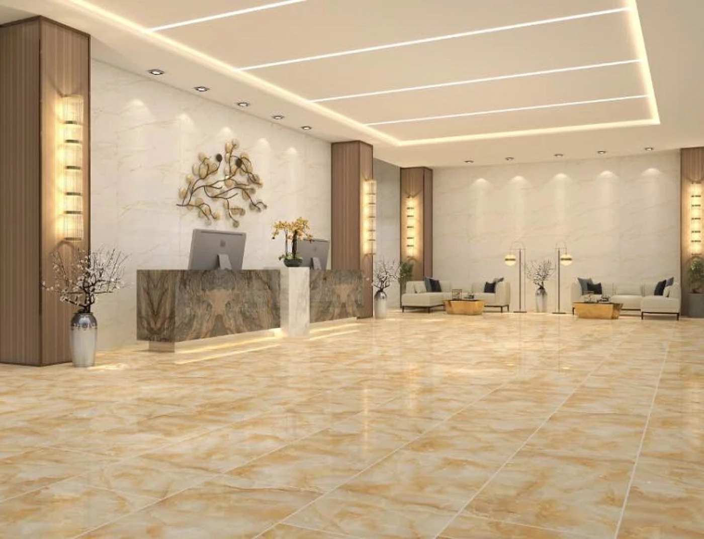 Porcelain Kháng Khuẩn 60120LANGBIANG002FP-H+ màu vàng ứng dung lát nền tiền sảnh khách sạn