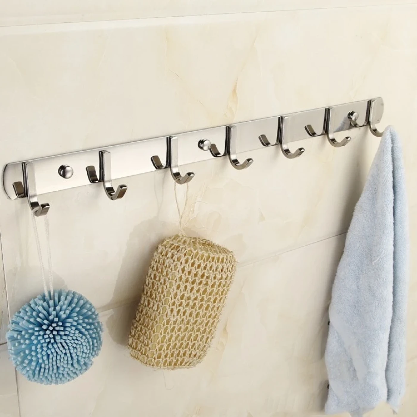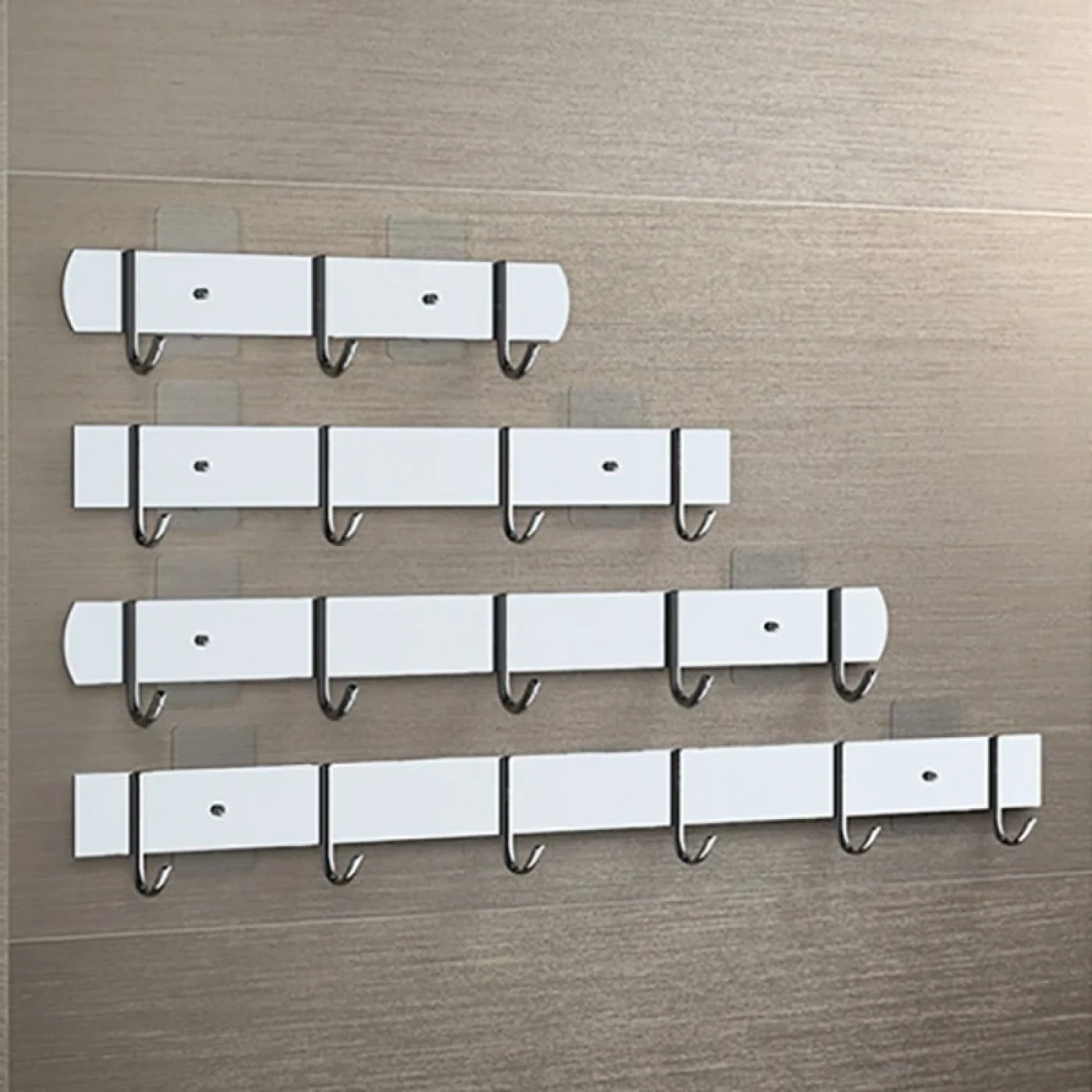 Móc thanh: Loại móc này bao gồm một thanh ngang dài tích hợp nhiều móc nhỏ (thường từ 3-7 móc), có thể có thêm kẹp khăn. Móc thanh thích hợp với gia đình đông người, cần treo nhiều quần áo và khăn tắm cùng lúc. Sản phẩm có sức chứa lớn, giúp phân loại và giữ đồ ngăn nắp trên cùng một khu vực.