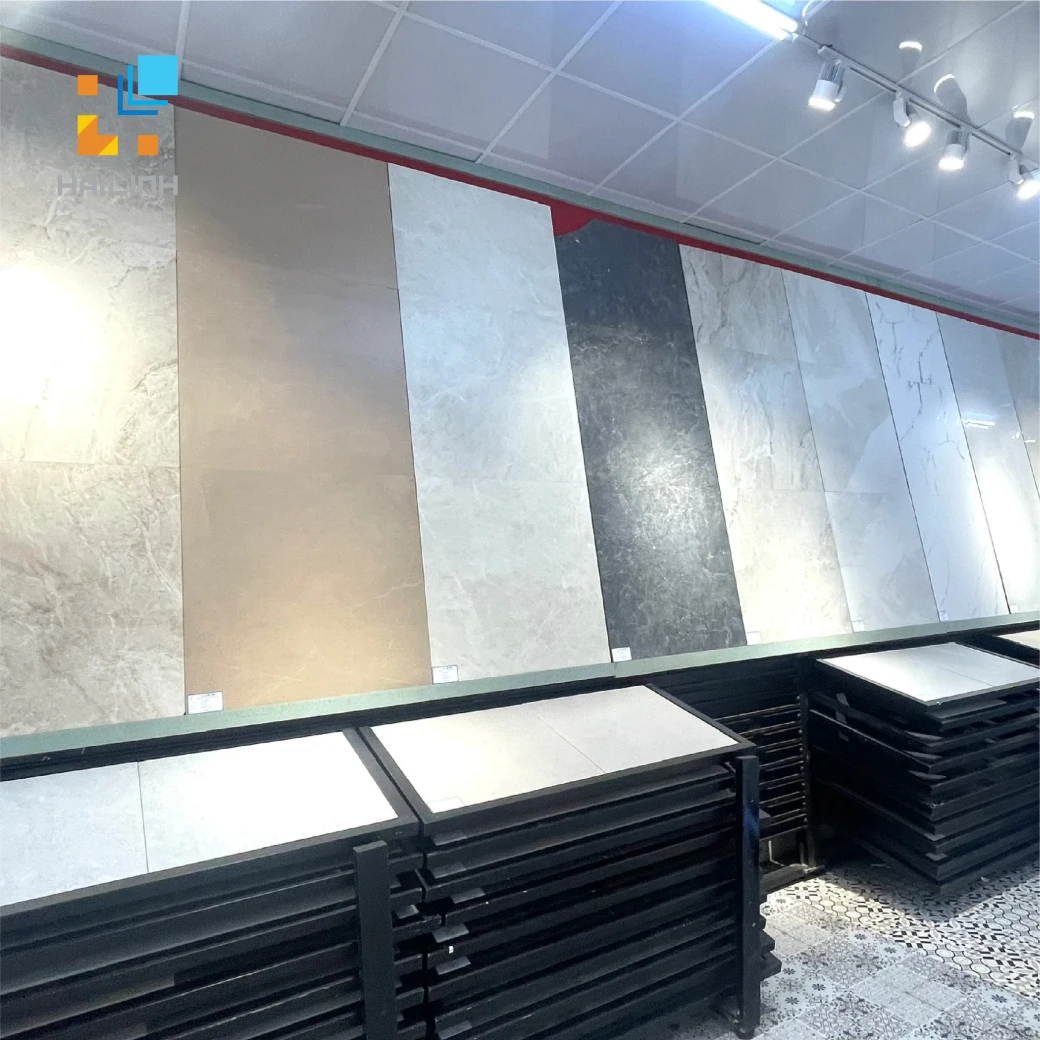 Showroom Hải Linh trưng bày đa dạng mẫu mã sản phẩm gạch nhập khẩu, gạch trong nước