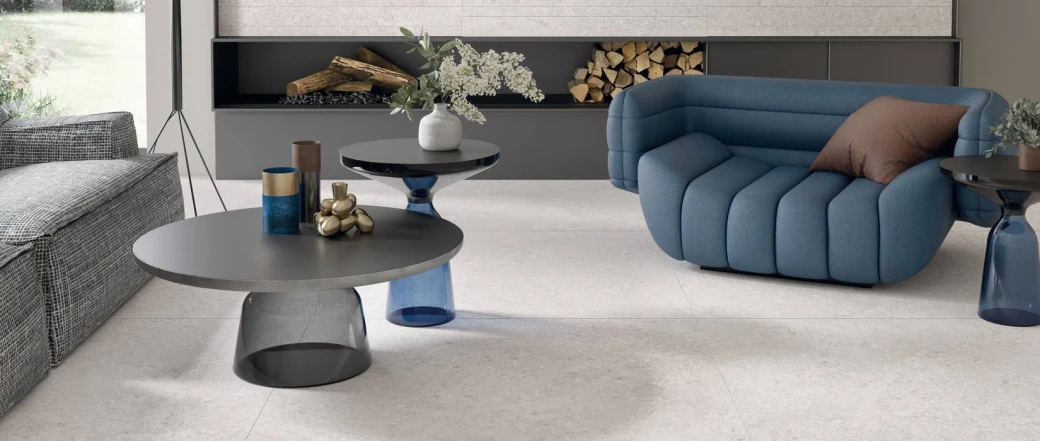 Gạch Porcelain ứng dụng vào phòng khách giúp không gian sang trọng hơn