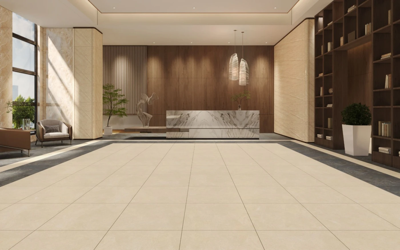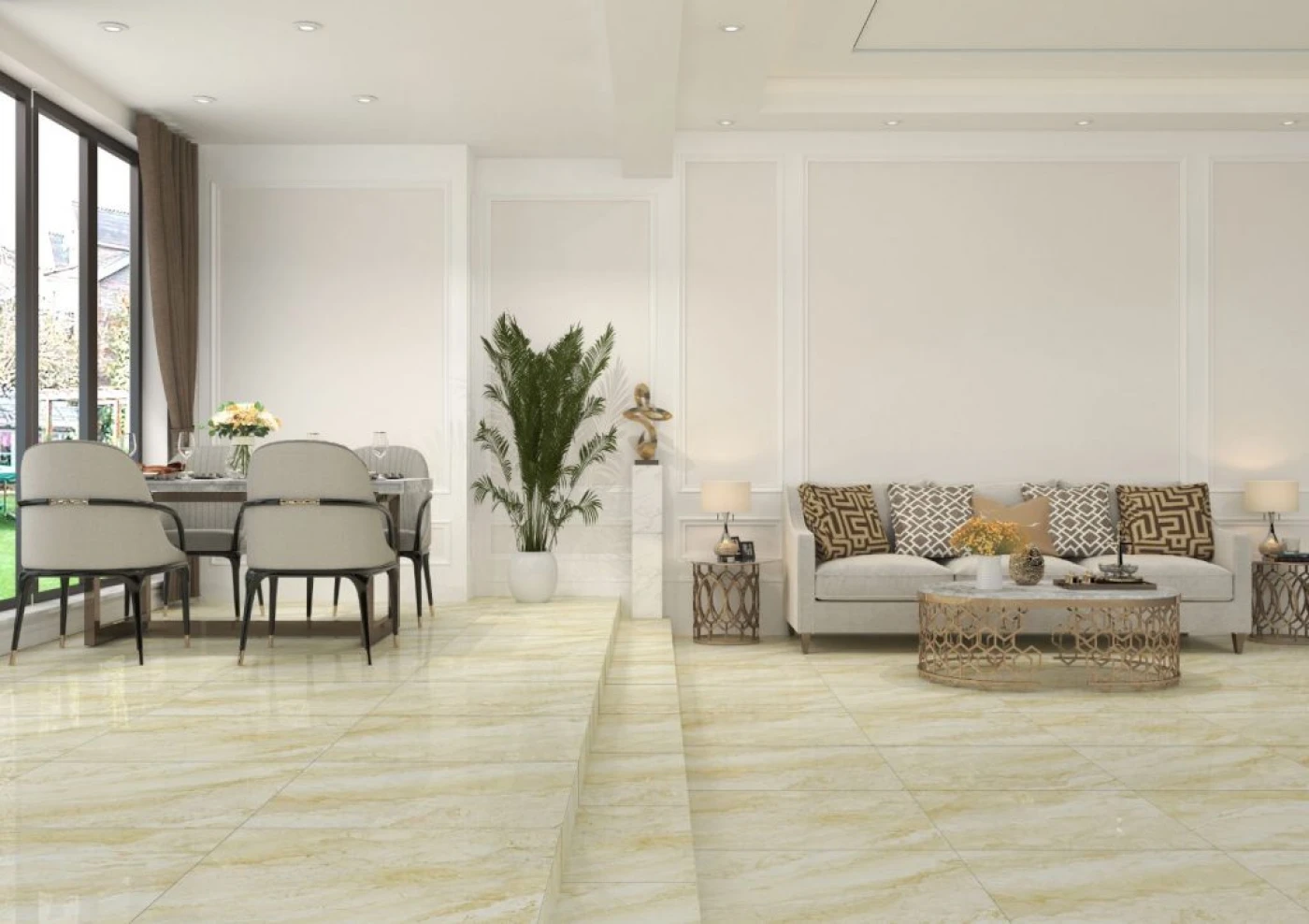 Gạch lát nền 60x60 Đồng Tâm 6060PHARAON003 có màu vàng kem mang đến cảm giác phóng khoáng, thanh lịch cho không gian ứng dụng