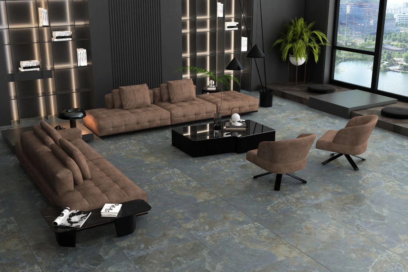 Gạch Đồng Tâm 6060PHARAON004 tông màu xám xanh loang màu mang đến sự trầm lặng, huyền bí và thể hiện cá tính riêng của gia chủ