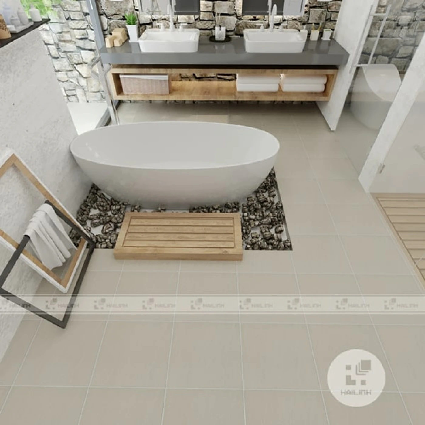Gạch TAICERA G38046 30x30, vân đá, men mờ, màu kem ứng dụng lát nền phòng tắm