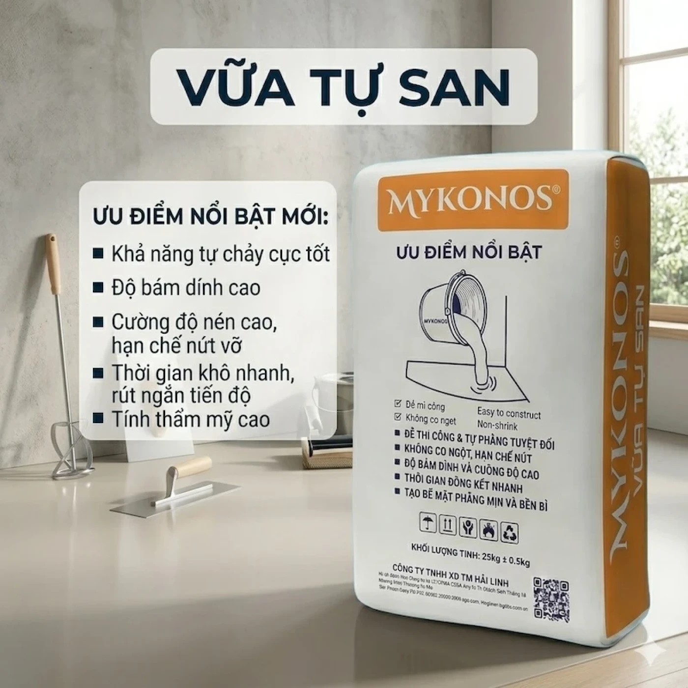 Trong xu hướng xây dựng bền vững, vữa tự san đang dần thay thế các phương pháp cũ nhờ sự vượt trội về công nghệ và hiệu quả thực tế. Để đạt được lớp nền "phẳng như gương" và đảm bảo độ bền cho các dòng sàn gỗ, gạch Porcelain cao cấp, việc lựa chọn đúng loại vữa chất lượng như Mykonos và đơn vị cung cấp uy tín như Showroom Hải Linh là yếu tố then chốt. Hãy để công trình của bạn được chăm sóc bởi những vật liệu tiên tiến nhất, tạo nên một nền móng vững chắc cho không gian sống hiện đại và sang trọng.