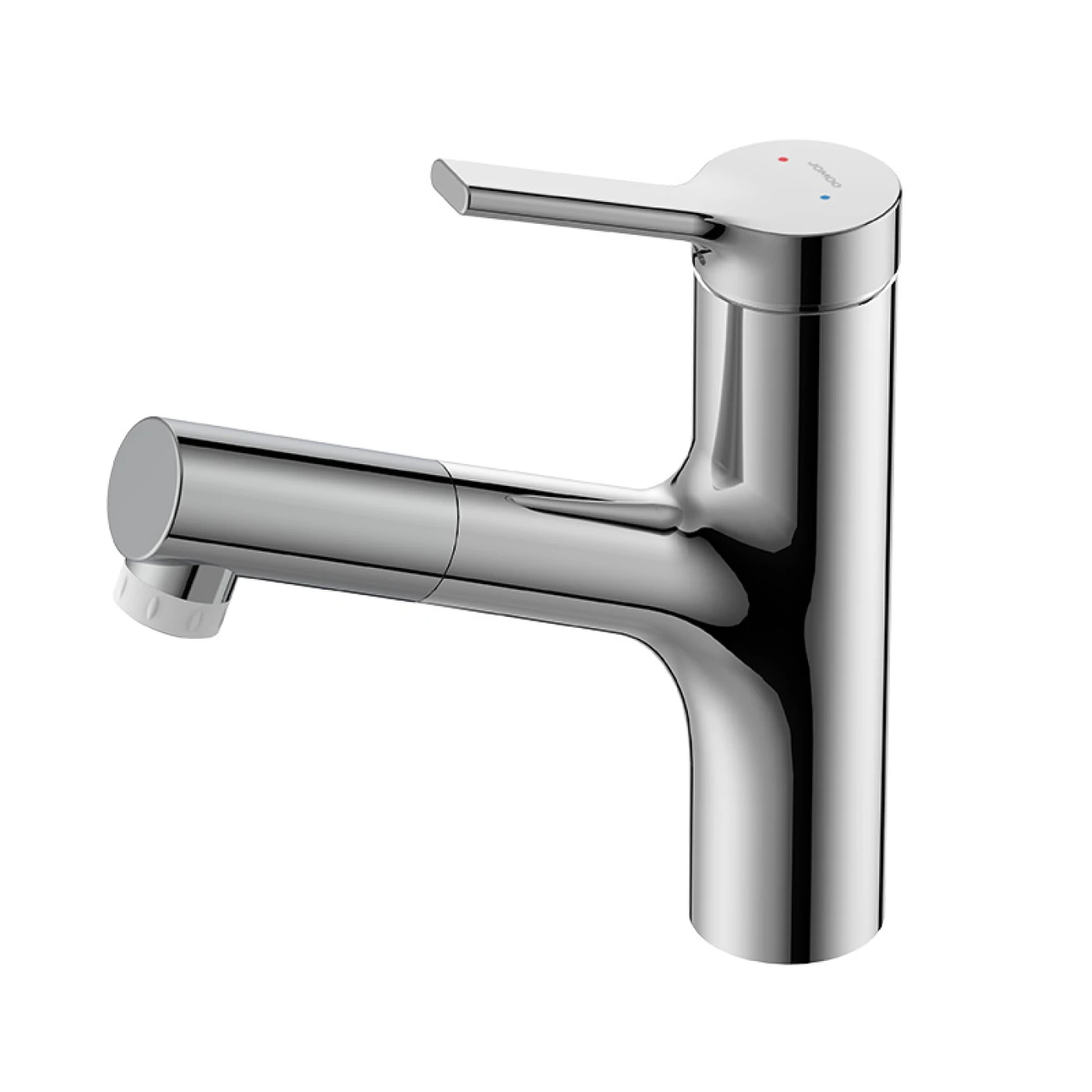 Thiết kế dây rút linh hoạt cho phép kéo dài đầu vòi để làm sạch hoặc sử dụng nước ở những góc độ khác nhau một cách dễ dàng.