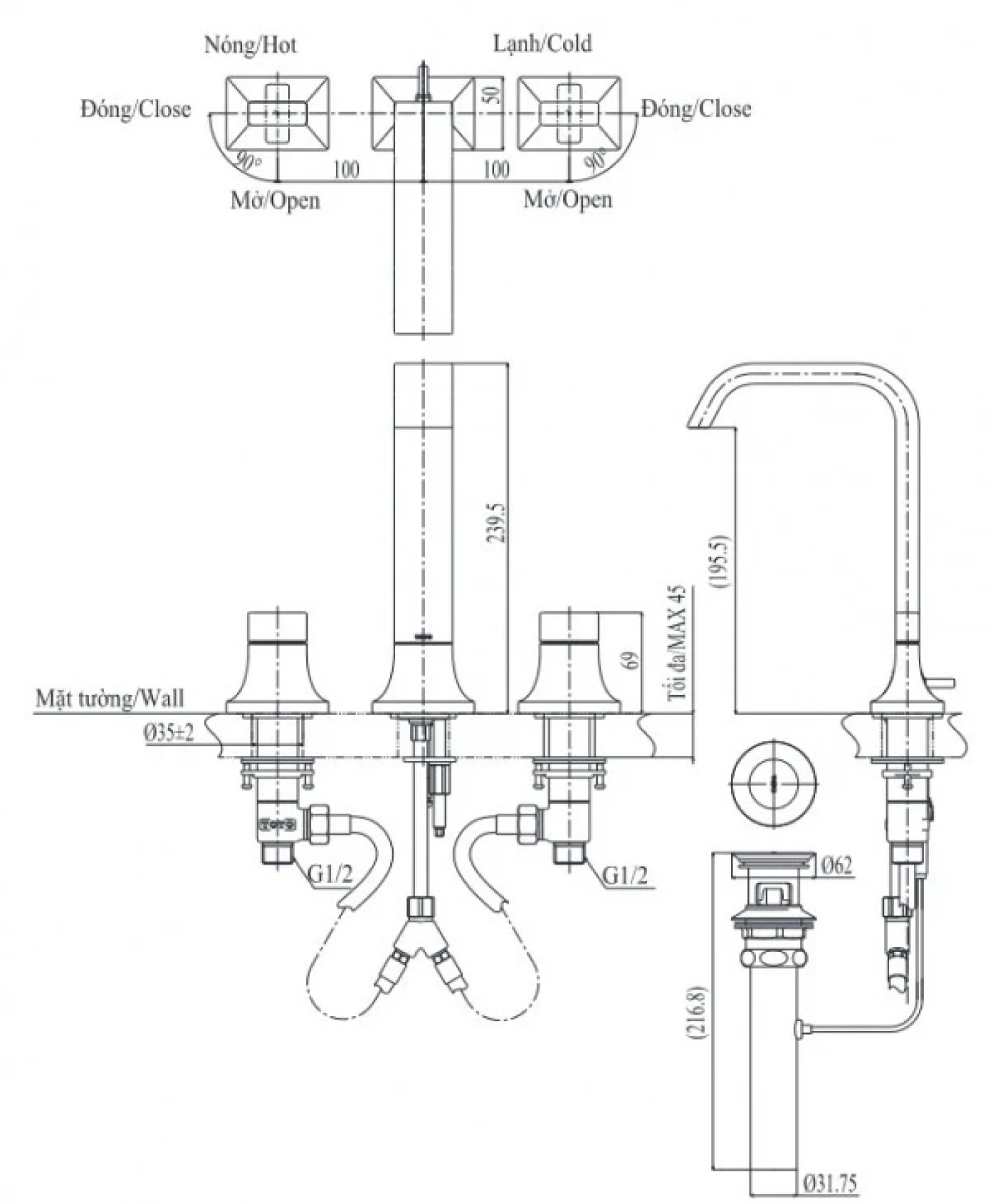 Van đĩa sứ chống bám cặn: Hệ thống van đĩa sứ giúp khóa nước hoàn toàn, ngăn chặn tình trạng đóng cặn và rò rỉ nước trong suốt quá trình sử dụng.