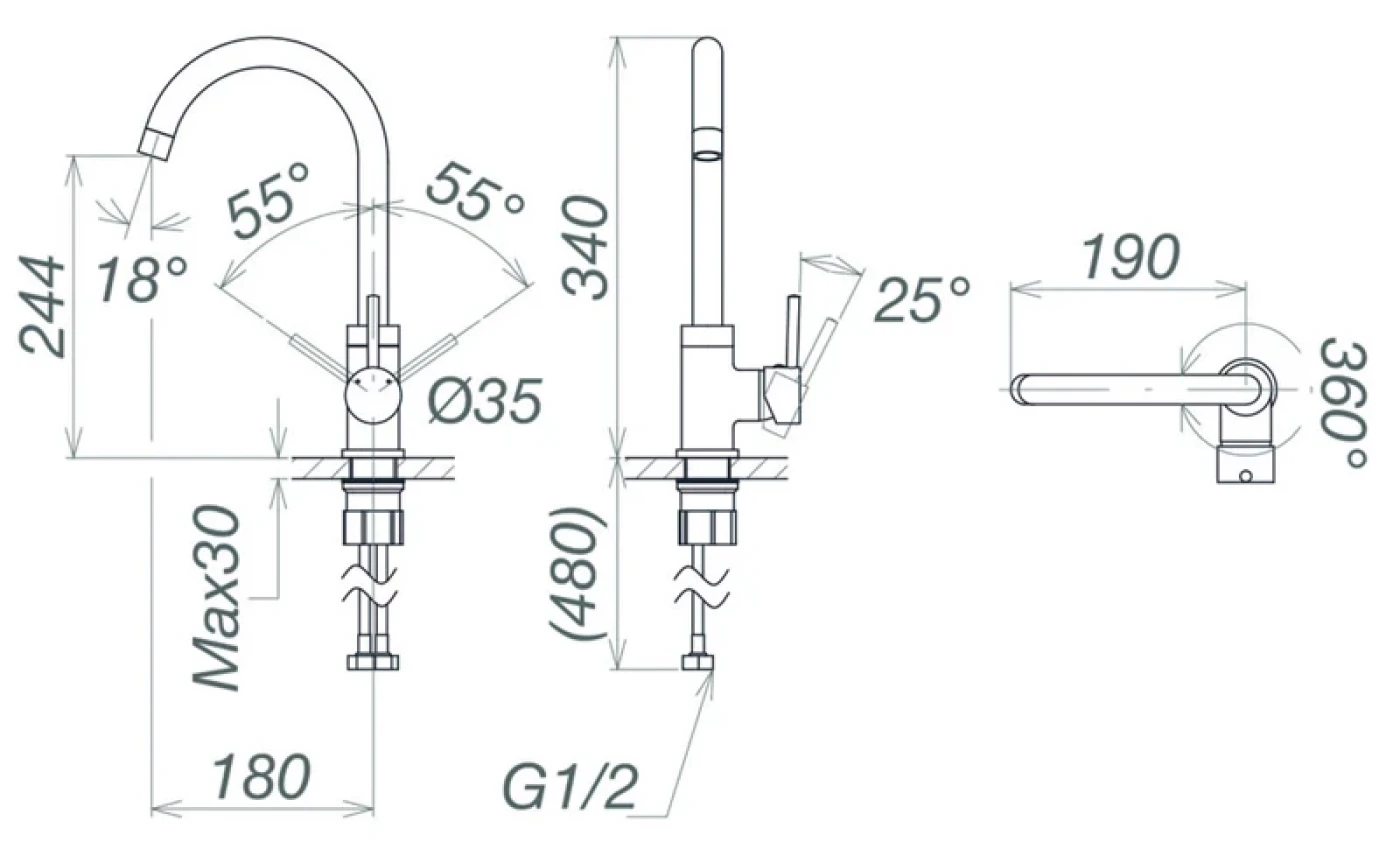 Bản vẽ kỹ thuật Vòi rửa bát Viglacera VG731